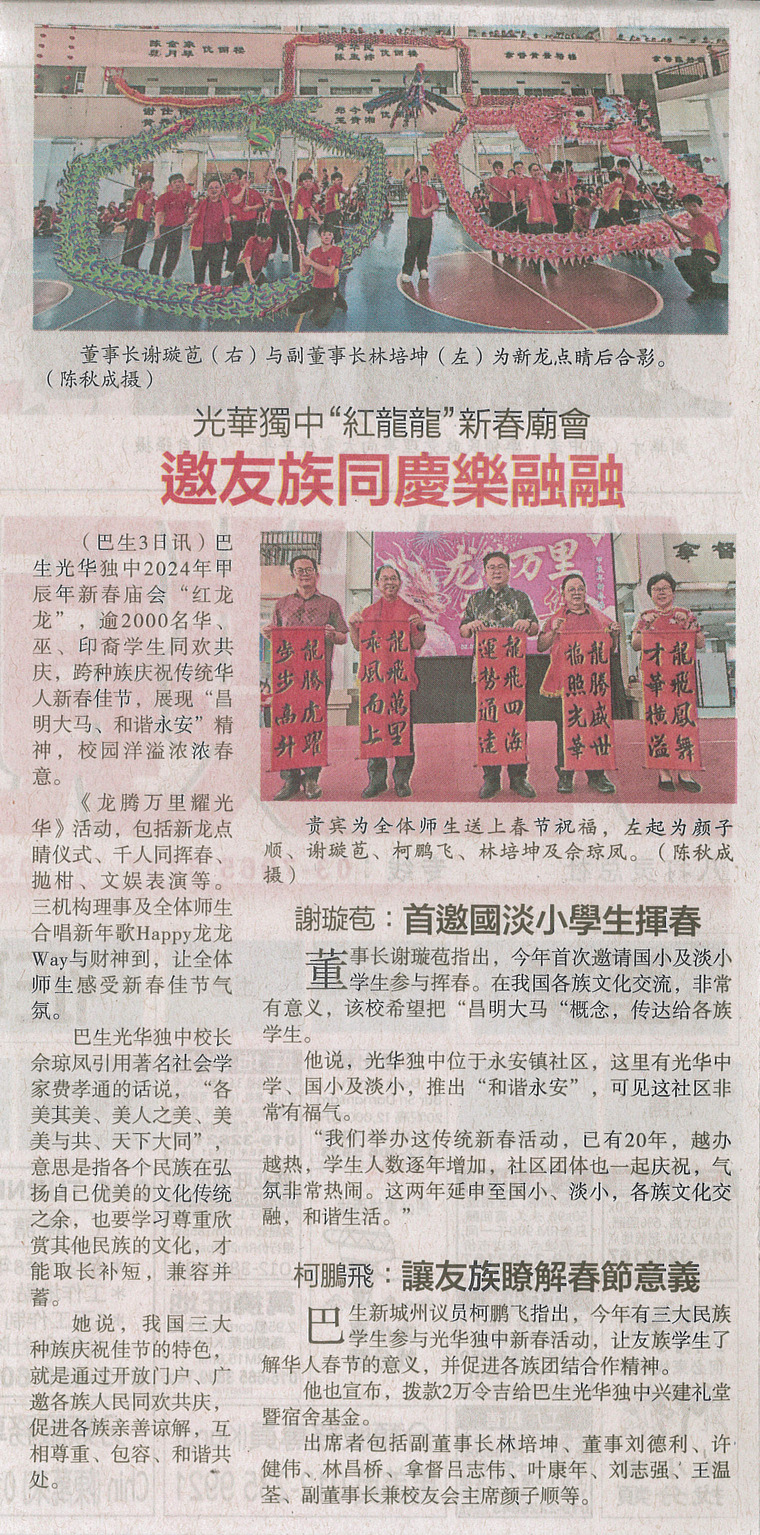 《星洲日报》光华独中“红龙龙”新春庙会邀友族同庆乐融融