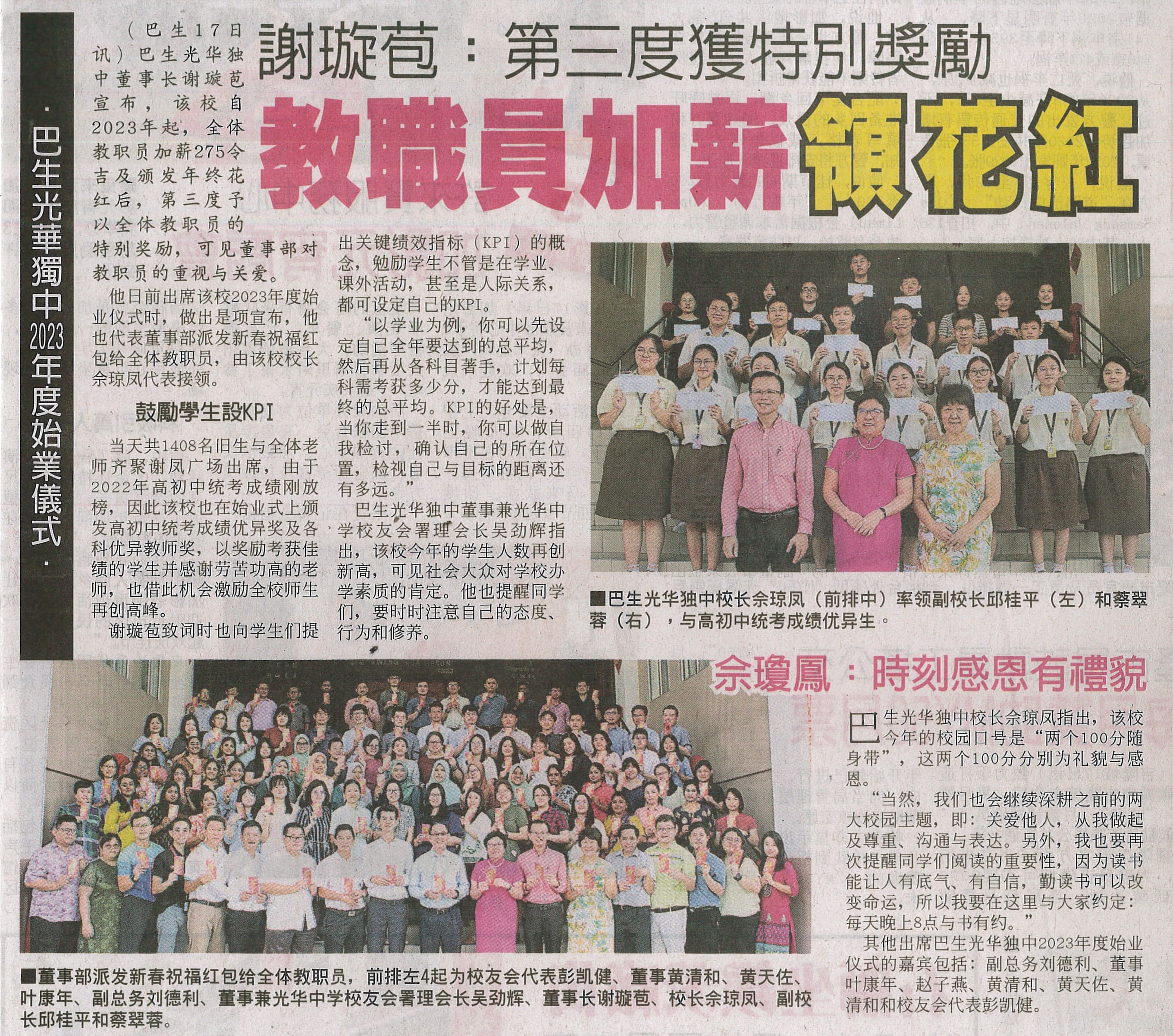 本校举行2023年始业式,学生设立KPI进行自我检讨
