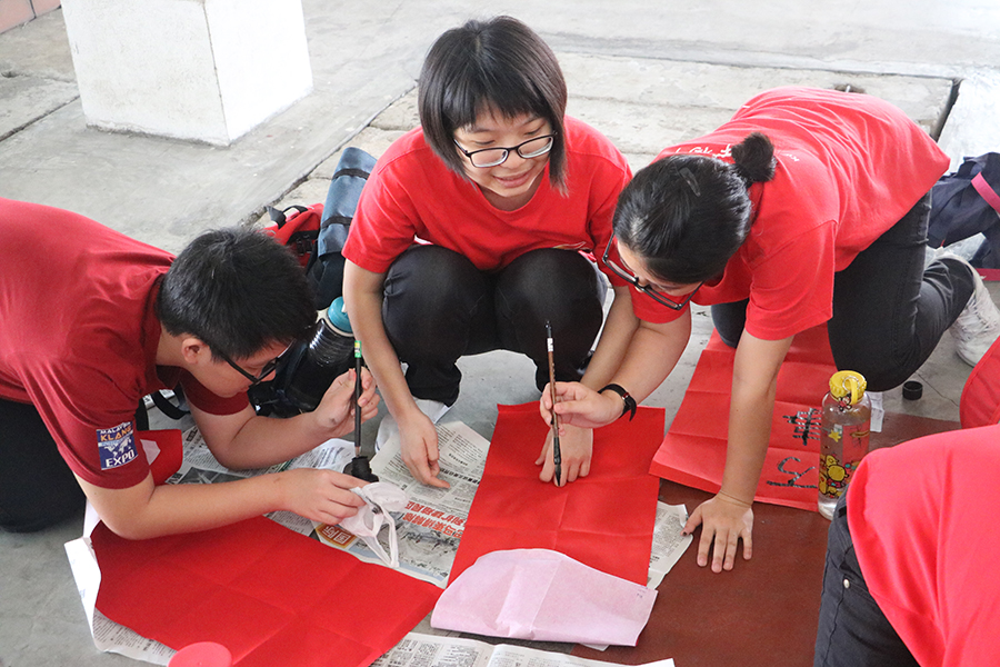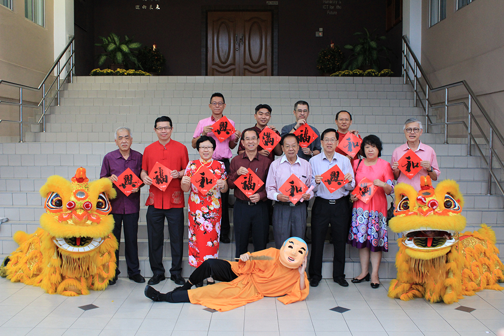 董事长谢璇苞、署理董事长陈友信、校友会会长徐礼明及校长佘琼凤在众董事的陪同下,挥毫写下“吉祥如意”贺新岁