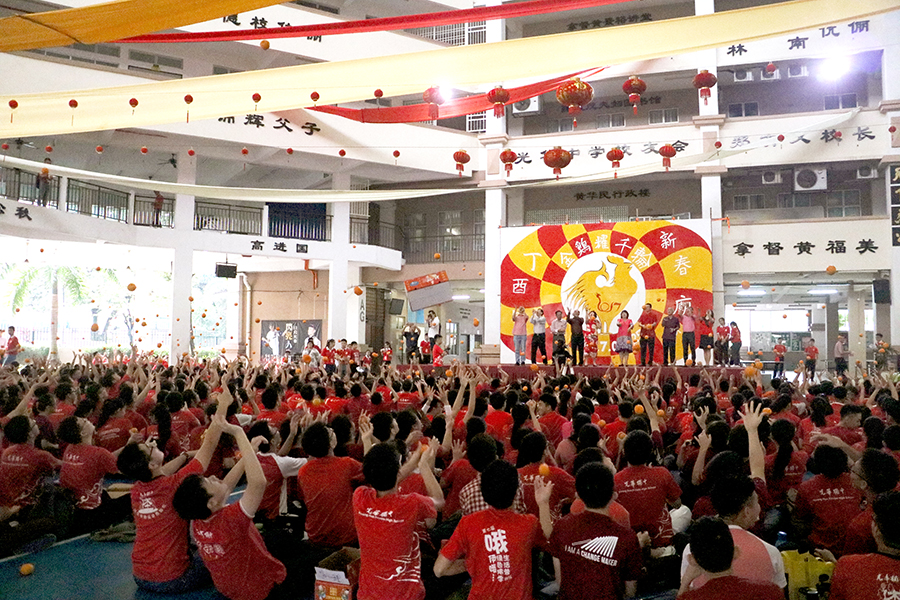 全体光华师生在校长佘琼凤的带领下,齐齐抛柑纳福,场面壮观