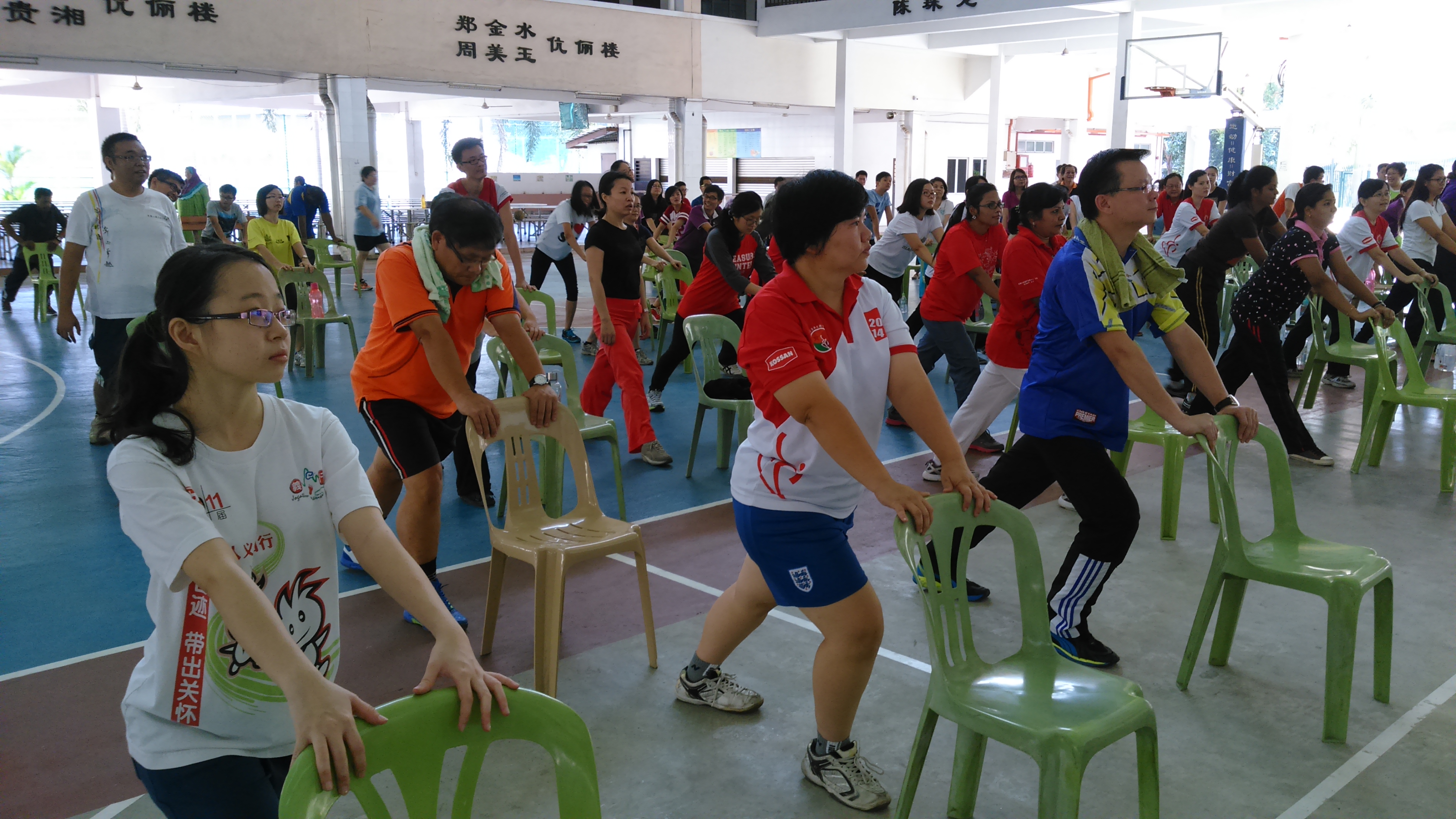 配合上述目标,巴生光华独中的教培组和体育处于上周六为教职员举办了一场保健工作坊。当天的工作坊特别邀请了毕业自纽西兰奥塔哥理工学院的健身教练赖文艺带领教职员运动。赖文艺为大家示范了一些热身活动和运动后伸展活动,同时呼吁大家多运动,以远离老师两大健康威胁,即恶性肿瘤和心脑血管疾病。